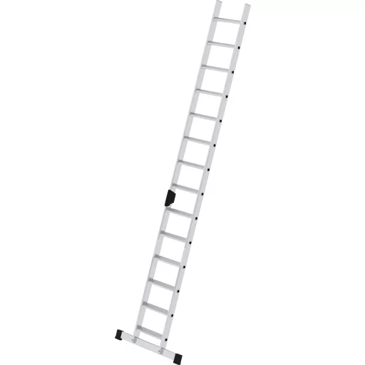 Lépcső létrák alumíniumból Stabil, téglalap alakú csövek, 80 mm mély, hullámos lépcsők 4-szeres karimás lépcső / Spar csatlakozás ergo-pad® fogózóna Lépési távolság: 235 mm vezető szélessége: 420 mm (átmenet nélkül) a kiválasztott termék optimális szélességében, biztonságos állásra és emelkedésre 3,0 m feletti ferde létrákkal. A keresztrúd lazán van bezárva és kétszer csavarva van a rúd alsó végéhez. Maximális terhelés: 150 kg