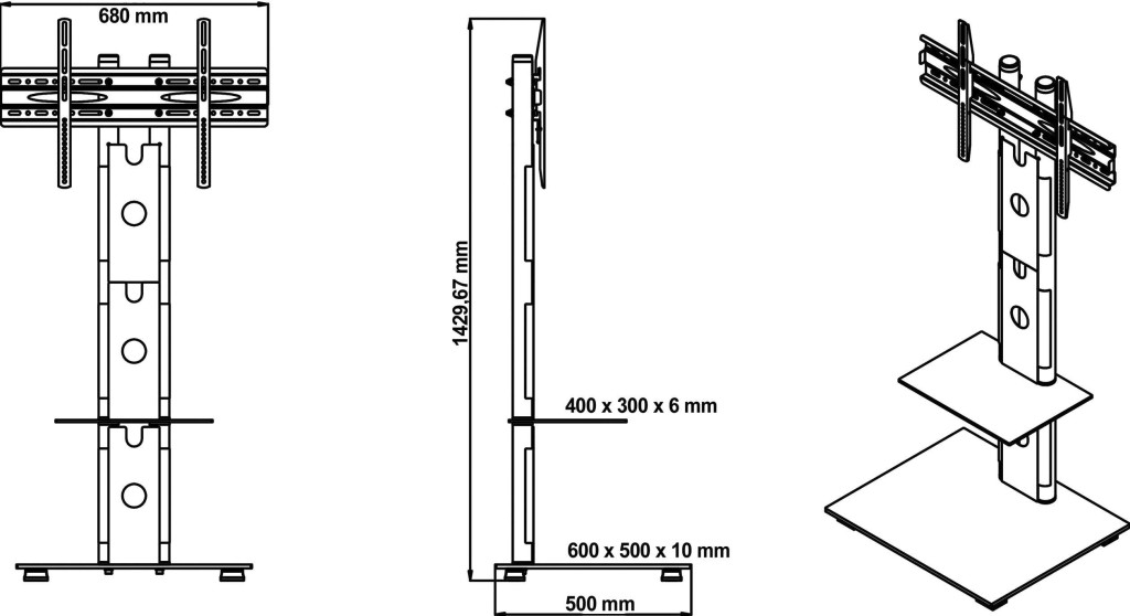 Műszaki adatok: Alkalmas a következő kijelző méretekhez: 81,3 cm (32"), 94,0 cm (37"), 101,6 cm (40"), 106,7 cm (42"), 109,2 cm (43"), 116,8 cm (46"), 119,4 cm (47"), 127,0 cm (50"), 129,5 cm (51"), 134,6 cm (53"), 139,7 cm (55"), 152,4 cm (60"), 160,0 cm (63"), 165,1 cm (65") · Anyag: Vas, üveg · Döntési tartomány (felfelé): 0 ° · Döntési tartomány (lefelé): 0 ° · Forgatás: 0 ° · Forgatási tartomány (balra): 0 ° · Forgatási tartomány (jobbra): 0 ° · Gyártói szín: Fekete · Gáznyomásos technológia: Nem · Méret, magasság: 93 cm · Méret, mélység: 10 cm · Méret, szélesség: 54 cm · Padló/mennyezet távolsága (max.): 1320 mm · Padló/mennyezet távolsága (min.): 1320 mm · Súly: 18.4 kg · Tartó kivitel: Merev · Tartóerő (max.): 40 kg · VESA szabvány: 300 x 300 mm, 300 x 400 mm, 400 x 200 mm, 400 x 300 mm, 400 x 400 mm, 500 x 350 mm, 500 x 400 mm, 600 x 200 mm, 600 x 300 mm, 600 x 400 mm