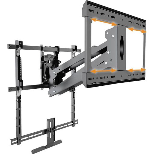 A teljesen mozgatható TV fali tartó oldalirányban mozgatható. Tapasztalja meg a televíziózást egy új dimenzióban a 4 irányú állíthatósággal. A képernyő vízszintesen mozgatható a tartón. Előre-hátra is dönthető, valamint jobbra és balra forgatható. Ez a precíz igazítás megakadályozza a nem kívánt tükröződést, és lehetővé teszi a filmek és sportesemények teljes élvezetét.