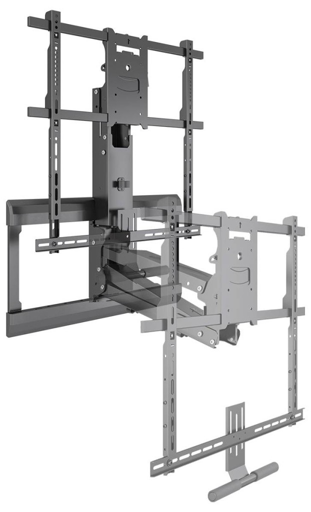 A TV-tartó számos gyártótól származó televíziókhoz használható, amelyek képernyőátlója 107 - 165 cm, VESA mérete 100 x 100 és 600 x 500 mm, tömege pedig 8-25 kg. A beépített gáznyomórugó a jól leolvasható súlymérlegnek köszönhetően pontosan a televízió súlyához rögzíthető. Ez lehetővé teszi a képernyő finom nyomással az ideális helyzetbe állítását. A szórakoztató élmény teljessé tétele érdekében a TV fali tartója egy sínnel van felszerelve a soundbar felszerelésére. Így harmóniában élvezheti a képet és a hangot.