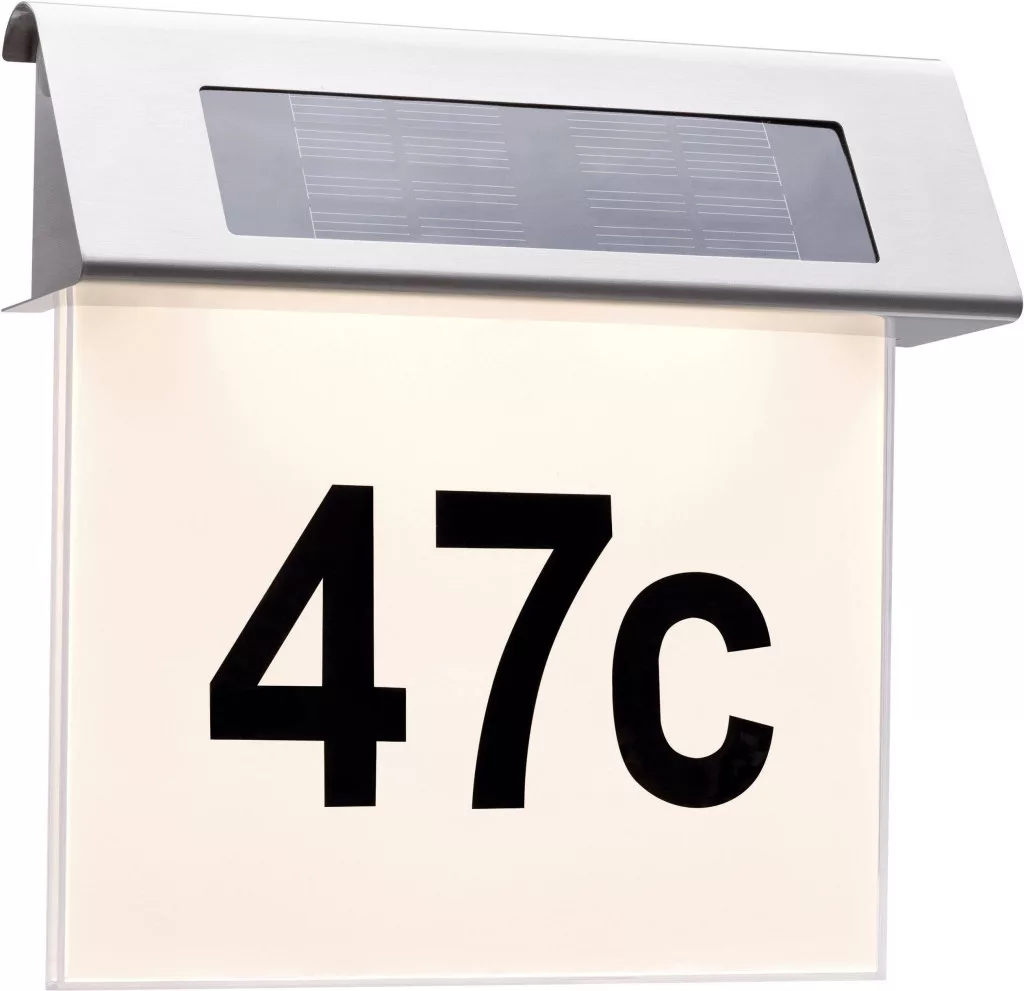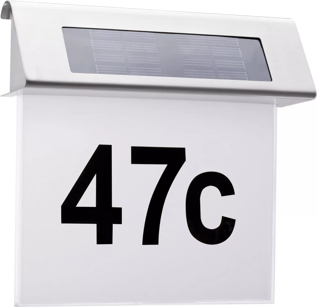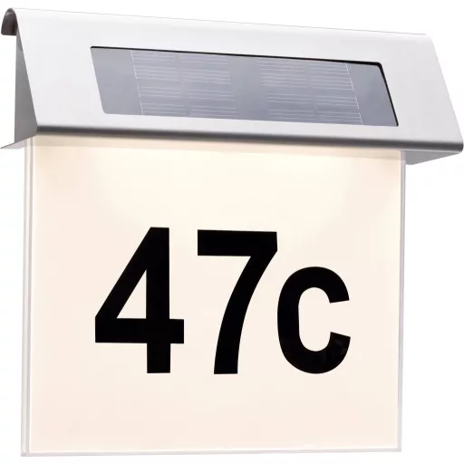 Műszaki adatok: Anyag: Nemesacél · Foglalat: Fixen beépített LED-es · Fényforrás típus: LED · Fényforrások száma: 1 · Fényszín: 3000 K · Lámpa típus: Napelemes házszám megvilágítás · Méret, magasság: 22 cm · Méret, mélység: 6 cm · Méret, szélesség: 23 cm · Szín: Nemesacél,Fehér · Súly: 1.05 kg · Teljesítmény: 0.2 W · Teljesítmény fényforrásonként: 0.2 W · Védelmi osztály: III · Védelmi típus: IP44