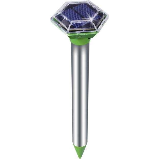 1000 Hz · Funkció: Rezgő · Hatótáv: 700 m² · Méret, magasság: 380 mm · Méret, mélység: 90 mm · Méret, szélesség: 80 mm · Szín: Zöld,Ezüst · Termék típus: Vakondriasztó · Tápellátás: 2 db ceruzaakku (vele szállítjuk) · Ütemtáv: 25 mp