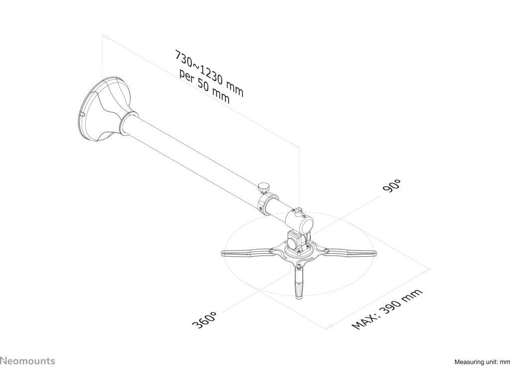 Neomounts BEAMER-W100SILVER Kivetítő fali tartó Dönthető, Forgatható Max. faltól való távolság: 123 cm Ezüst