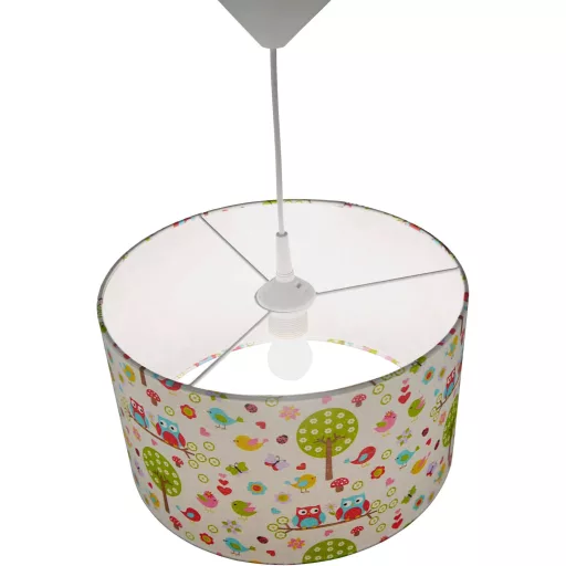 A szövetből készült lámpaernyő gyönyörű természeti illusztrációi úgy érzik, mintha kint sétálnál. A lámpa a külsőre emlékeztet, de megfelelő fényt biztosít a gyermekek szobájában lévő pillanatok számára. A lámpa függesztett magassága állítható, ezért bármilyen gyermekszobába alkalmas.