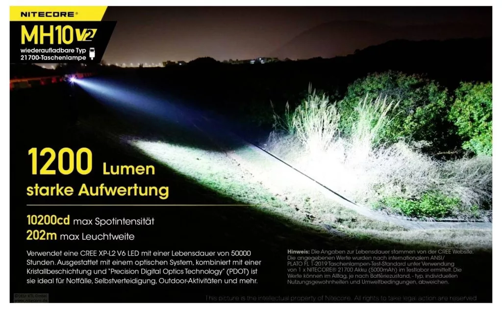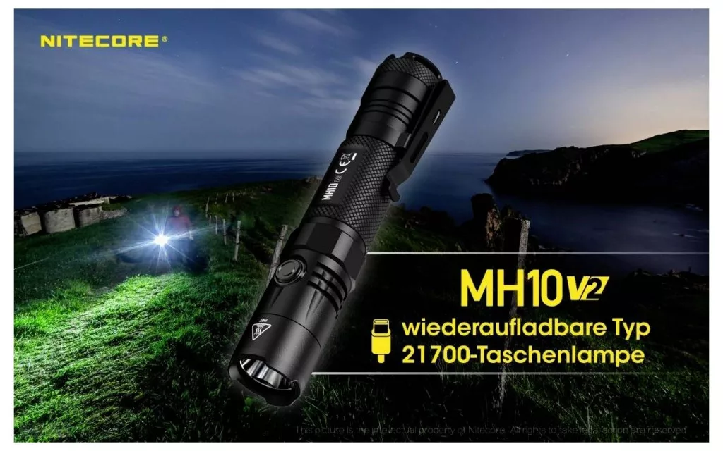 Az MH10V2 a Nitecore Multitask Hybrid sorozatának egy másik tagja. A régi MH10 frissítése az új 21700-as akkumulátorgenerációval érkezik. Ez nemcsak megnövelt, összesen 4000 mAh-s kapacitást tesz lehetővé, hanem összesen 1200 lumen megnövelt világítási teljesítményt is tesz lehetővé.