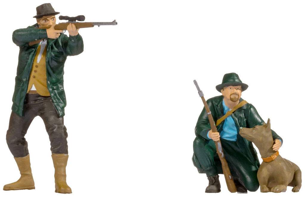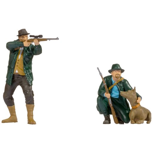 A figurakészlet 2 figurát tartalmaz. Egy vadász áll a puskájával egy szarvasra célozva. Tipikus vadászruházatot visel, ezért filckalapot visel, zöld kabátja van, valamint sötétbarna nadrágja és bőrcsizmája. A másik vadász szintén hagyományos vadászruhát visel. A földön ül és simogatja a vadászkutyáját, ami helyet csinált mellette. Leakasztotta a puskáját.