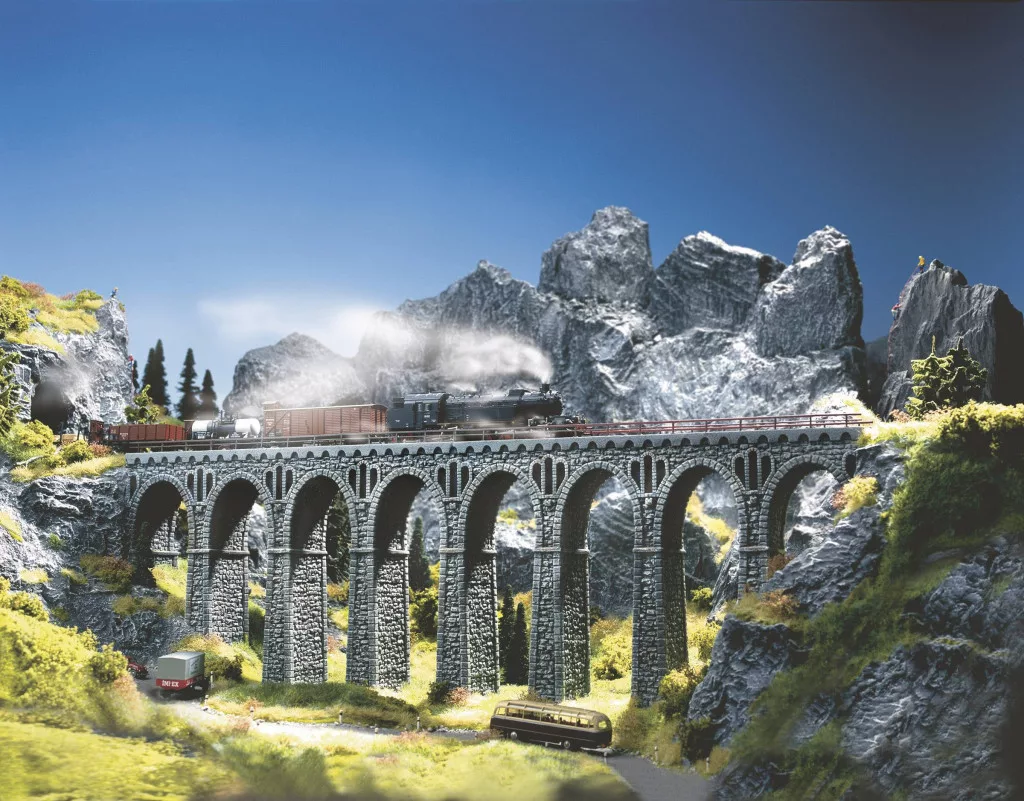 Műszaki adatok: Alkalmas (vágány rendszer): Univerzális · Korosztály: 15 éves kortól · Megépítési méret: H0 · Modell kivitel (modellvasút): #####Gerade,#####Hartschaum-Fertigmodell · Méret, hossz: 370 mm · Méret, magasság: 245 mm · Méret, szélesség: 44 mm · Termék típus: Terméskő viadukt · Vágányok száma: 1 vágányú