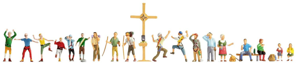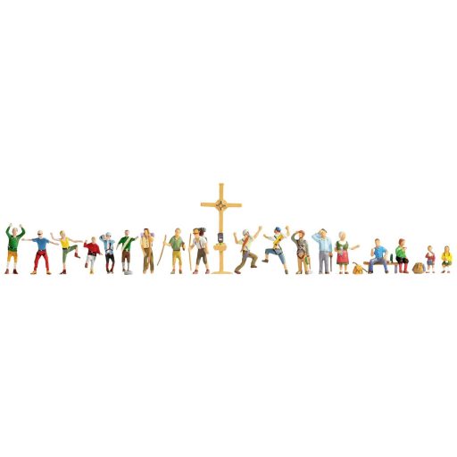 Műszaki adatok: Figurák száma: 18 · Kivitel (általános): A hegyekben · Korosztály: 15 éves kortól · Megépítési méret: H0 · Modell kivitel (modellvasút): Festett, Álló, Ülő · Téma: Család és szabadidő, Szabadban