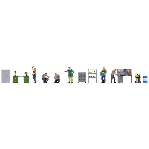 Műszaki adatok: Figurák száma: 6 · Kivitel (általános): ábra Témavilág " Műhely" · Megépítési méret: H0 · Modell kivitel (modellvasút): Festett · Téma: Munka közben, Az építkezésen