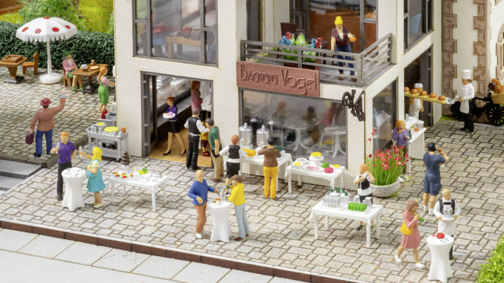 Műszaki adatok: Figurák száma: 5 · Kivitel (általános): Büfékészlet-2 · Korosztály: 15 éves kortól · Megépítési méret: H0 · Modell kivitel (modellvasút): Festett, Álló · Téma: Munka közben, Család és szabadidő, Ünnepek