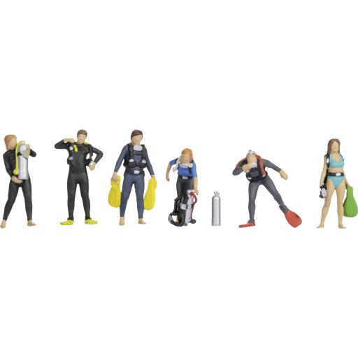 Technical specifications: Figurák száma: 6 · Kivitel: Búvár · Korosztály: 15 éves kortól · Megépítési méret: H0 · Modell kivitel (modellvasút): Festett,Álló · Téma: Család és szabadidő,A vadonban,Sportolók és atléták