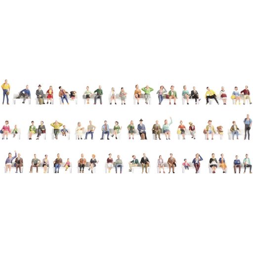 Műszaki adatok: Figurák száma: 60 · Korosztály: 15 éves kortól · Megépítési méret: H0 · Modell kivitel (modellvasút): Festett, Ülő · Téma: Átutazóban