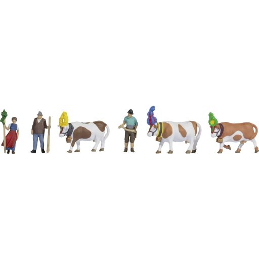 A NOCH Almabtrieb figurakészlete a hagyományos bajor marhahajtás varázsát hozza el az Ön modellvasúti elrendezésébe. A készlet részletes figurákat tartalmaz: büszke gazdák és gazdafeleségek hagyományos viseletben, valamint szeretettel díszített tehenek virágokkal és harangokkal. Tökéletes jelenetek készítéséhez alpesi legelőkön, falvakban vagy felvonulásokon.