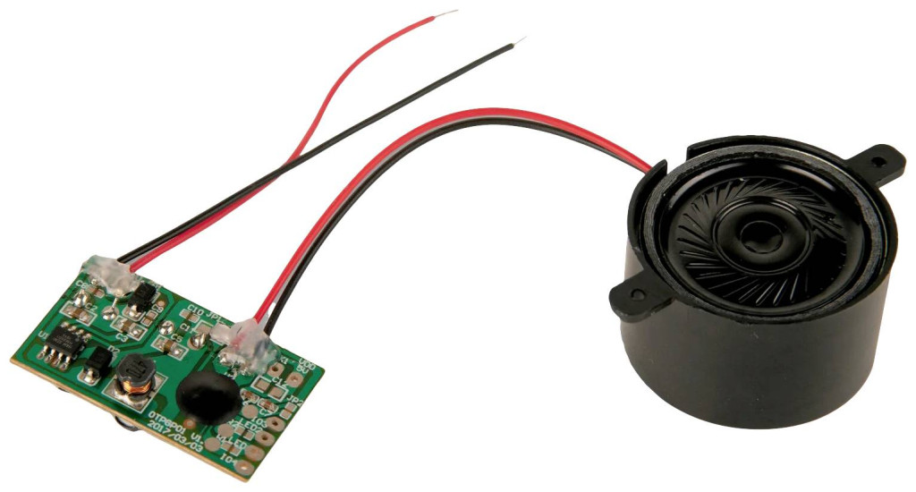 Az elektronika kompakt kialakításának és a NOCH hangjelenetek hangszóróinak köszönhetően a hang ott jön létre, ahonnan eredetileg. Így például motorhanggal elhelyezhető a csatlakozásra kész elektronika. Meg fogsz lepődni, mennyivel valósághűbbnek tűnik egy hang, amikor az akció közepén van. Így varázsol egy kanyargós utat izgalmas motorversenyzé. A csatlakozás szabványos 16 V-os modellvasúti transzformátoron keresztül történik. A hang hossza körülbelül 20 másodperc. Alkalmas egyen- és váltóáramra. Megjegyzés: A hang hangereje nem állítható. Ha túl hangosnak találja a zajt, megrendelheti a cikkszámot. 91900 ellenállást rendelni utólagos felszereléshez.