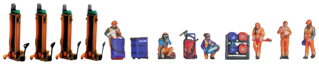 Műszaki adatok: Figurák száma: 6 · Kivitel (általános): Vasúti raktár · Korosztály: 15 éves kortól · Megépítési méret: N · Modell kivitel (modellvasút): Festett, Álló · Téma: Munka közben, A vasúti közlekedésben