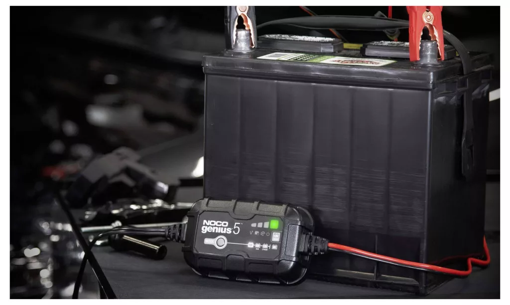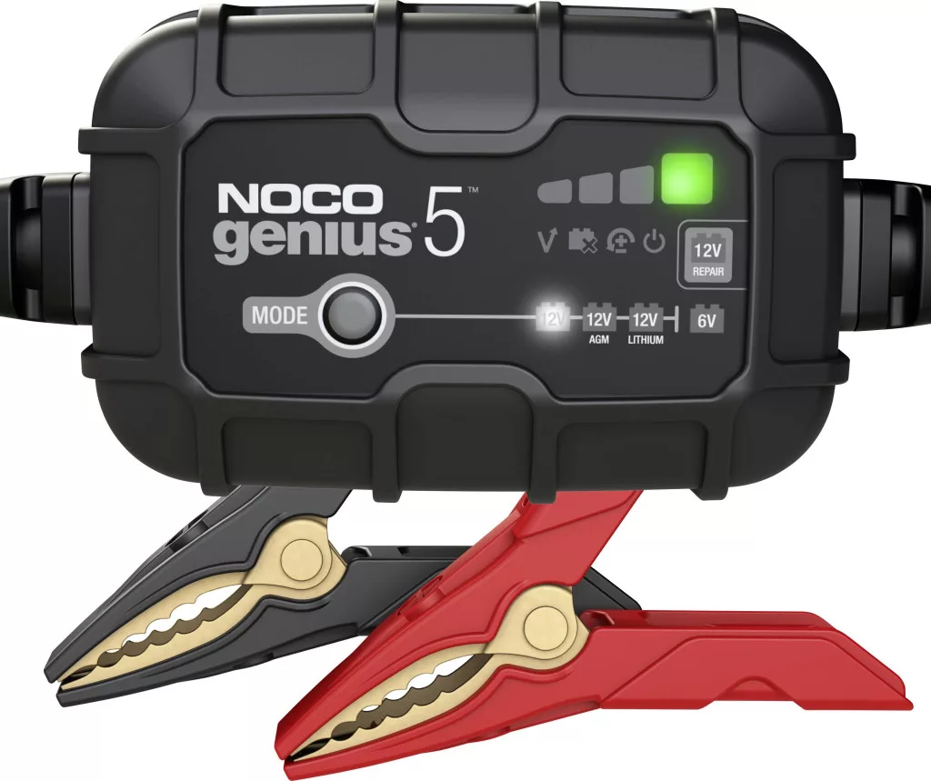 NOCO GENIUS5EU 5A töltő 6/12V – intelligens 6V/12V töltő ólom-savas és lítium akkumulátorok töltéséhez, karbantartásához és ápolásához. Kompakt, hatékony és folyamatos használatra alkalmas.