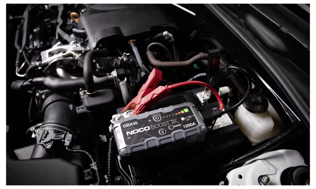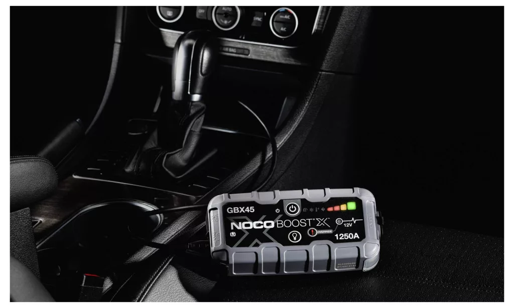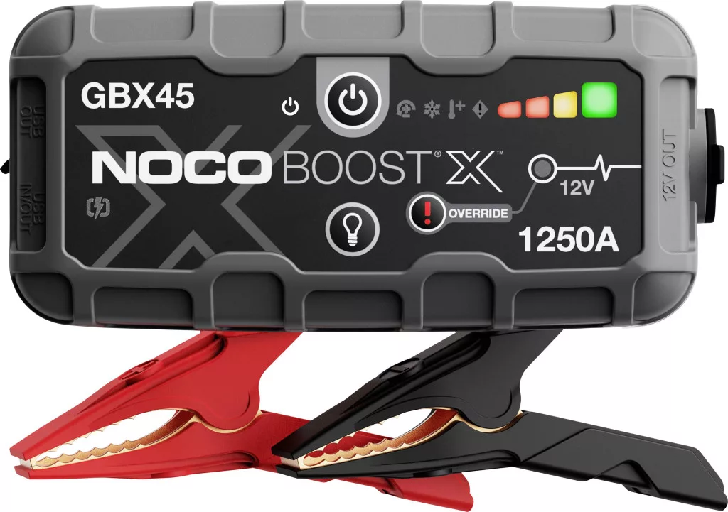 NOCO GBX45 Boost X 12V 1250A indító – kompakt lítium indító 12 V-os akkumulátorokhoz. Ideális gyors indításra és mobil töltésére, robusztus házzal és beépített LED-lámpával.