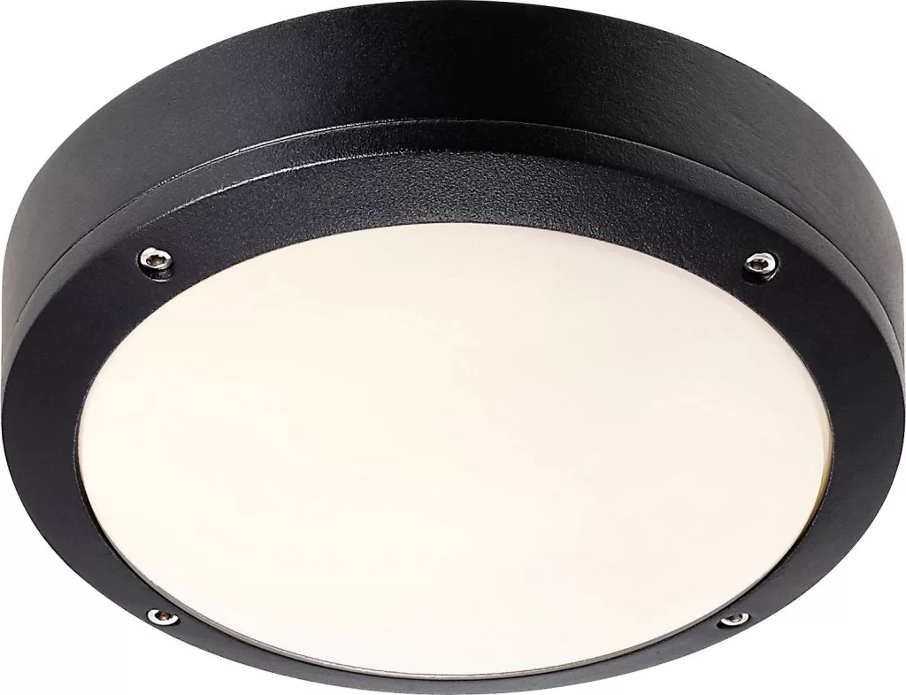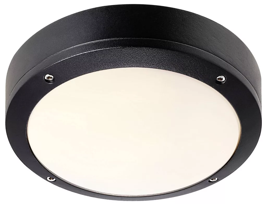 Technical specifications: 2021-es energiahatékonysági osztályok: n.rel. · Anyag: Alumínium,Műanyag · Foglalat: E27 · Kivitel: Kerek · Szín: Fekete · Védelmi típus: IP44 · Átmérő: 223 mm · Üzemi feszültség: 230 V