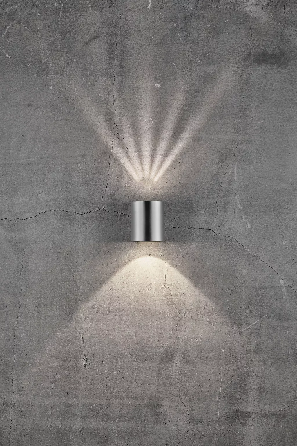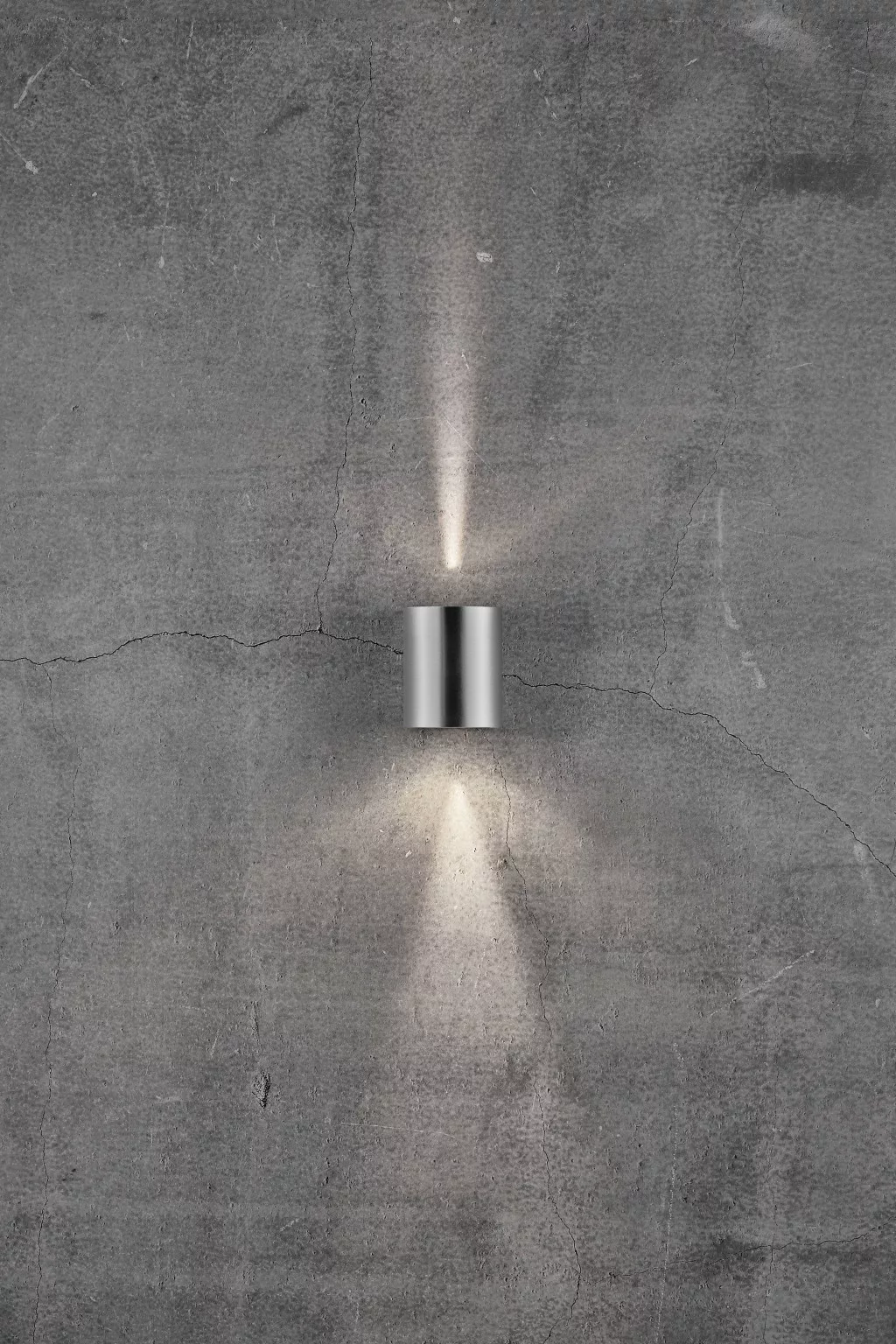 Műszaki adatok: 2021-es energiahatékonysági osztályok: n.rel. · Anyag: Alumínium · Fényforrások száma: 2 · Fényforrással: Igen · Fényszín: 2700 K · Fényszín (fényforrás): Melegfehér · Fényáram összesen: 500 lm · Gyártói szín: Nemesacél · Helyiség: Terasz/ülősarok, Járda megvilágítás, Hangulatos kertvilágítás, Ház/garázs · Kivitel (lámpa): Hengeres · Lámpa jellemzők: Felfelé és lefelé világít, Beállítható fénykilépés · Méret, magasság: 104 mm · Méret, mélység: 100 mm · Méret, szélesség: 87 mm · Stílus: Modern/dizájn, Fiatal lakás · Tanúsító kód, EEK: 788235 · Teljesítmény: 12 W · Teljesítmény fényforrásonként: 6 W · Védelmi osztály: I · Védelmi típus: IP44 · Üzemi feszültség: 230 V