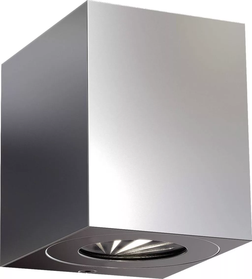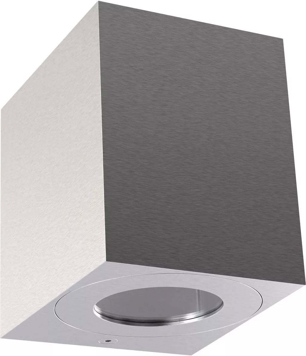 Műszaki adatok: 2021-es energiahatékonysági osztályok: n.rel. · Anyag: Alumínium · Fényforrások száma: 2 · Fényforrással: Igen · Fényszín: 2700 K · Fényszín (fényforrás): Melegfehér · Fényáram összesen: 500 lm · Gyártói szín: Nemesacél · Helyiség: Terasz/ülősarok, Járda megvilágítás, Hangulatos kertvilágítás, Ház/garázs · Kivitel (lámpa): Derékszögű · Lámpa jellemzők: Felfelé és lefelé világít, Beállítható fénykilépés · Méret, magasság: 104 mm · Méret, mélység: 100 mm · Méret, szélesség: 87 mm · Stílus: Modern/dizájn, Fiatal lakás · Tanúsító kód, EEK: 788250 · Teljesítmény: 12 W · Teljesítmény fényforrásonként: 6 W · Védelmi osztály: I · Védelmi típus: IP44 · Üzemi feszültség: 230 V