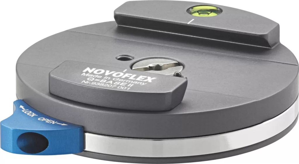 Gyorscsatlakozó Q = Base II - automatikus, gyors és biztonságos - ARCA-UniQ / C-kompatibilis A Q = BASE II gyorscsatlakozó alap az automatikus, rendkívül gyors változat a NOVOFLEX professzionális gyorscsatlakozó sorozatból. A koncepció során külön hangsúlyt fektettek a még egyszerűbb kezelhetőségre, a lényegesen kompaktabb kialakításra és az alacsonyabb súlyra. Q = BASE II lehetővé teszi a behelyezett levehető lemez automatikus rögzítését. További meghatározás manuálisan is elvégezhető. Az automatikus alapfunkció és a kézi reteszelésnek ez a sikeres kombinációja biztosítja a felhasználó számára az optimális kontrollt az értékes kamera rögzítése felett. Ezenkívül egy "biztonsági csap" megakadályozza a véletlenszerű kicsúszást minden elképzelhető irányban. Ezenkívül az állványlemez integrált szinttel rendelkezik, rá lehet csavarni és át lehet csavarni, ezért belső menetes alkatrészeken is használható. A Q = BASE II gyorscsatlakozóhoz különféle, különböző kivitelű levehető lemezek (Q = TÁBLA) kaphatók (nem tartoznak a gyorscsatlakozó szállítási körébe). Ezenkívül számos más gyártó profilcserélhető lemezei (típus: ARCA-UniQ / C) opcionálisan használhatók, de a biztonsági csap funkció csak az eredeti NOVOFLEX Q = TÁBLA-khoz kapcsolódik. Műszaki adatok: - Átmérő: 8 cm - Magasság: 1,6 cm - Súly: 120 g