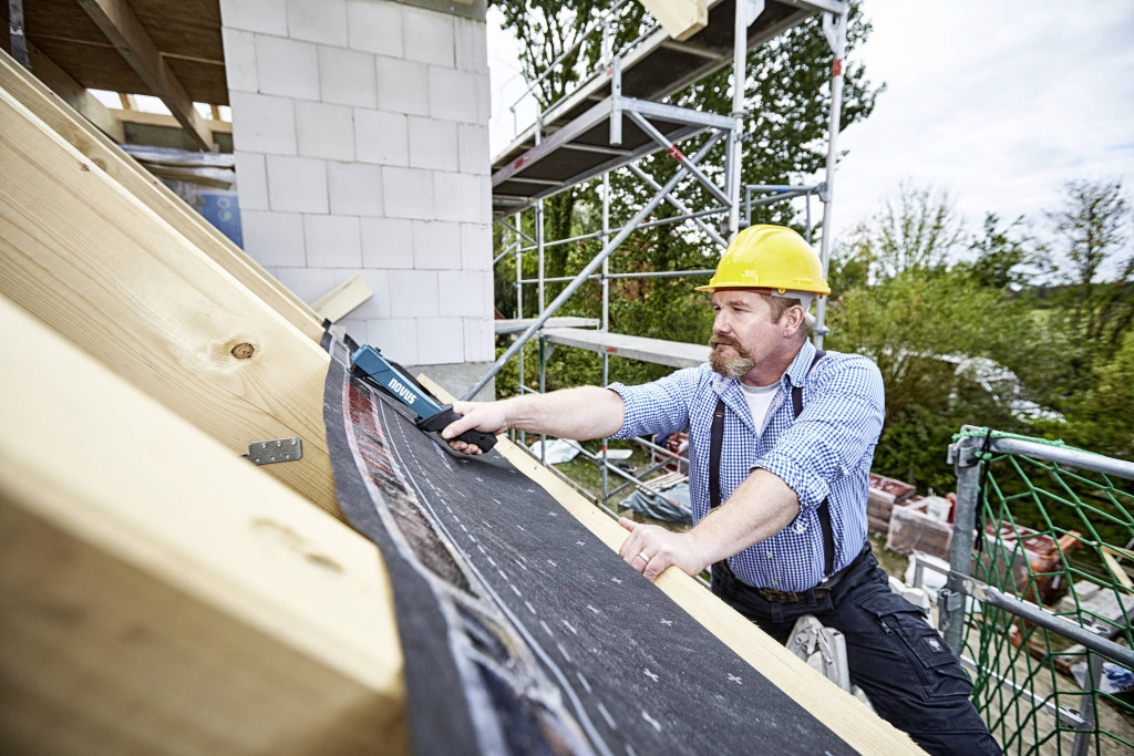A NOVUS TOOLS J-044 kalapácsos tűzőgép egy nagy teljesítményű professzionális tűzőgép, amely új mércét állít fel a professzionális rögzítéstechnikában, és így igazi mindenes az építkezésen. Az ütvefűző ideális eszköz profi kézművesek és ambiciózus barkácsolók számára, akik nagyra értékelik a minőséget, az ergonómiát és a tartósságot. Amikor nagy mennyiségre és nagy munkasebességre van szükség alacsony pontossági követelmények mellett, a kalapácsos tűzőgépek jó választásnak bizonyulnak. A színes piktogramok egy pillantással mutatják a kompatibilis bilincs típusát. Ez az ütvefűző 6-12 mm-es lapos drótkapcsokat (G 11-es típus) dolgoz fel, és ideális minden igényes feladathoz – a professzionális tetőbővítésektől kezdve az alátétek rögzítésén át a bitumenes zsindelyek lerakásáig. A robusztus és tartós, teljesen fémből készült ház, valamint a fixen beépített alkatrészek maximális tartósságot és hosszú évekig tartó megbízhatóságot garantálnak a mindennapi használat során is. A tűzőgép széles ütőlapja biztosítja, hogy az anyag felülete még az erős tűzőgép-ütések esetén sem sérüljön. Ez a kiváló anyagminőség nélkülözhetetlen eszközzé teszi ezt a fém tűzőgépet mind a tetőn, mind az építkezésen. A kompakt professzionális tűzőgép átgondolt részleteivel nyűgöz le. Az innovatív és praktikus felülről tölthető mechanizmus, beépített tűzőkapocs-tolóval, lehetővé teszi a tűzőkapcsok gyors és egyszerű utántöltését. A tűzőcsatorna egy gombnyomással könnyen kinyitható. A nagy, akár 175 lapos drótkapocs kapacitás időt takarít meg, mivel munka közben kevesebb rakodási műveletre van szükség. A jól látható bilincs-betekintő ablak mindig mutatja a töltöttségi szintet. Még a nagy projektek is örömtelivé válnak ezzel a tűzőgéppel. A csúszásmentes és ergonomikus kialakítású puha markolat a szerszám optimalizált egyensúlyával kombinálva biztonságos és stabil kezelést, valamint fáradtságmentes munkát tesz lehetővé, még nagyobb projektek esetén is. A kezdőkészlet 5000 db horganyzott, lapos drótkapcsot tartalmaz, 11/10-es típus, az azonnali munkakezdéshez. Akár fóliák, tömítőszalagok, (kátrány)karton vagy viaszpapír gyors rögzítéséről van szó – ez a kalapácsos tűzőgép megbízható társ a professzionális eredmények eléréséhez.