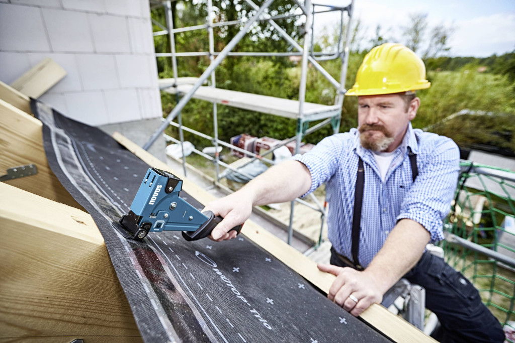 A NOVUS TOOLS J-055 kalapácsos tűzőgép egy nagy teljesítményű professzionális tűzőgép, amely új mércét állít fel a professzionális rögzítéstechnika területén, és így igazi mindenes az építkezésen. Az ütvefűző ideális eszköz profi kézművesek és ambiciózus barkácsolók számára, akik nagyra értékelik a minőséget, az ergonómiát és a tartósságot. Amikor nagy mennyiségre és nagy munkasebességre van szükség alacsony pontossági követelmények mellett, a kalapácsos tűzőgépek jó választásnak bizonyulnak. A színes piktogramok egy pillantással mutatják a kompatibilis bilincs típusát. Ez az ütvefűző 6-14 mm-es lapos drótkapcsokat (G 11-es típus) dolgoz fel, és ideális minden igényes feladathoz – a professzionális tetőbővítésektől és javítási munkáktól kezdve a bitumenes zsindelyek lerakásáig. A robusztus és tartós, teljesen fémből készült ház, valamint a fixen beépített alkatrészek maximális tartósságot és hosszú évekig tartó megbízhatóságot garantálnak a mindennapi használat során is. A tűzőgép széles, mozgatható ütőlapjának köszönhetően az anyag felületét még az erős tűzőgép-ütések sem károsítják, ami azt jelenti, hogy például a párazáró fóliák fáradságos utómunkálataira már nincs szükség. Ez a kiváló anyagminőség teszi ezt a fém tűzőgépet nélkülözhetetlen eszközzé a folyamatos használathoz tetőbővítéseknél vagy gipszkarton építésnél. A kompakt professzionális tűzőgép átgondolt részleteivel nyűgöz le. Az innovatív és praktikus felülről tölthető mechanizmus, beépített tűzőkapocs-tolóval, lehetővé teszi a tűzőkapcsok gyors és egyszerű utántöltését. A tűzőcsatorna egy gombnyomással könnyen kinyitható. A nagy, akár 175 lapos drótkapocs kapacitás időt takarít meg, mivel munka közben kevesebb rakodási műveletre van szükség. A jól látható bilincs-betekintő ablak mindig mutatja a töltöttségi szintet. Még a nagy projektek is örömtelivé válnak ezzel a tűzőgéppel. A csúszásmentes és ergonomikus kialakítású puha markolat a szerszám optimalizált egyensúlyával kombinálva biztonságos és stabil kezelést, valamint fáradtságmentes munkát tesz lehetővé, még nagyobb projektek esetén is. Az előre néző súly megnövelt ütőerőt és így a kapcsok könnyed beütését biztosítja. A kezdőkészlet 5000 db horganyzott, lapos drótkapcsot tartalmaz, 11/10-es típus, az azonnali munkakezdéshez. Akár fóliák, tömítőszalagok, (kátrány)karton vagy viaszpapír gyors rögzítéséről van szó – ez a kalapácsos tűzőgép megbízható társ a professzionális eredmények eléréséhez.