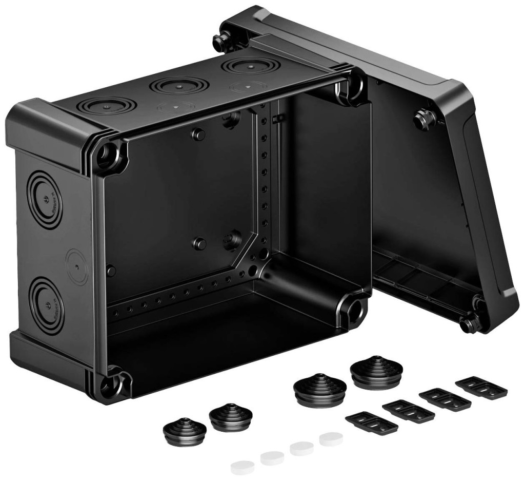 Az elektromos kábeleket a robusztus X sorozatú csatlakozó dobozokba hozzák össze. Alkalmasak beltéri és kültéri használatra. A belépési nyílások előre rögzítve vannak a könnyű kábelbevitelhez. Alkalmasak beltéri és kültéri használatra. Védett kültéri területeken történő használat esetén a csatlakozódobozt védeni kell a közvetlen időjárási viszonyoktól (pl. Hó, szél, eső vagy nap). A csatlakozódobozt a DIN EN 60670-1, VDE 0606-1: 2014 (EN 60670-1: 2005 + Cor.:2007 + Cor.:2010 + A1: 2013) és a DIN EN 60670-22, VDE 0606-22 szabvány szerint tesztelték : 2007 (EN 60670-22: 2006). A csatlakozódoboz megfelel az EN 67529, VDE0470-1: 2014 (EN 60529 / AC: 2016) szerinti IP 67 szerinti védelmi fokozat követelményeinek.
