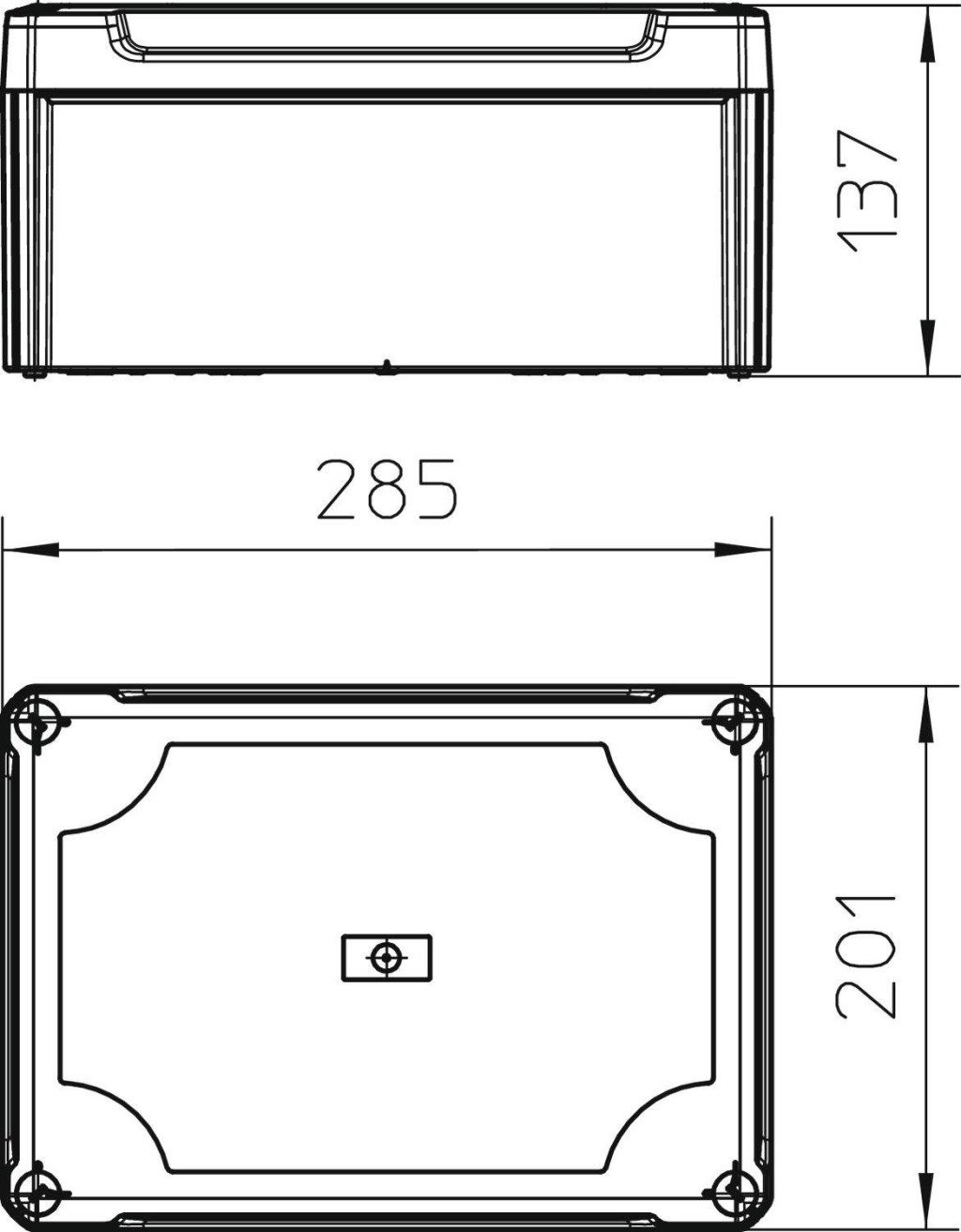 Műszaki adatok: Gyártói szín: Szürke · Méret, hossz: 285 mm · Méret, mélység: 137 mm · Méret, szélesség: 201 mm · További műszaki adatok: Max. Vezetőkeresztmetszet = 35 mm²