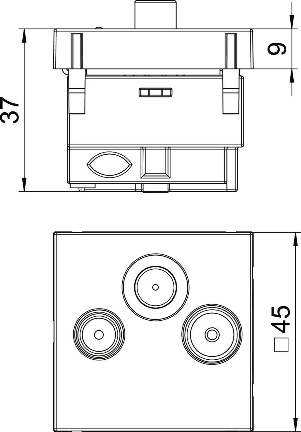 Műszaki adatok: Kivitel: Tápvonalcsonk doboz · SAT-ok száma: 1 x · Szín: Alumínium · TV-k száma: 1 x · Termék típus: Antenna csatlakozó · További műszaki adatok: 860 MHz = 1 dB, terminál csillapítás 2150 MHz-en = 2 dB, kimenetek száma = 3, frekvencia = 5,2150 MHz · URH-k száma: 1 x