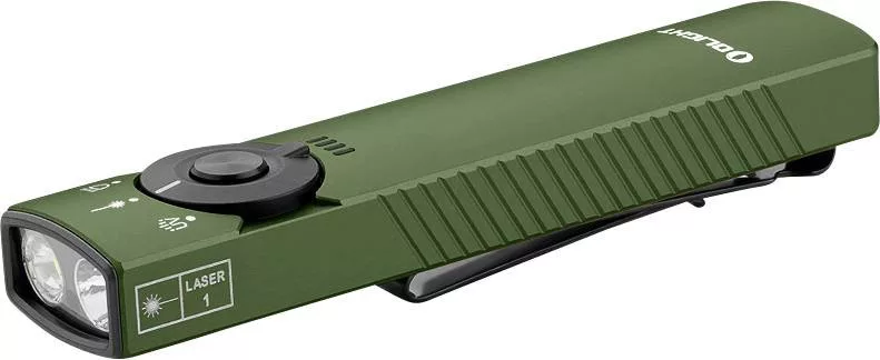 Sokoldalú 3 az 1-ben EDC: Az Olight ELSŐ újratölthető zseblámpája, amely 1300 lumenes fehér fényt, 900 mW-os UV fényt és 1. osztályú zöld lézert kombinál, sokoldalúságot kínál széles körű alkalmazásokhoz.