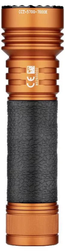 Technical specifications: Anyag: Fém · Elemtípus: 21700 · Fényforrás típus: LED (egyszínű) · Fényáram (high): 4600 lm · Méret, hossz: 133 mm · Méret, magasság: 35 mm · Méret, szélesség: 28 mm · Szín: Narancs · Súly: 205 g · Világítási távolság (High): 260 m · Védelmi típus: IPX8 · Vízálló: Igen