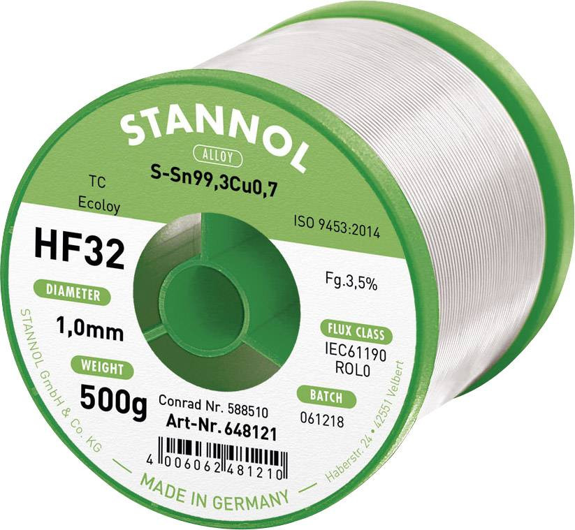 Forrasztóhuzal, ólom és halogénmentes, HF32 3500 SN99,3Cu0,7