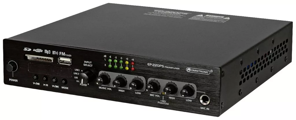 OMNITRONIC EP-220PS előerősítő MP3 lejátszóval, Bluetooth és FM rádió 9,5"
