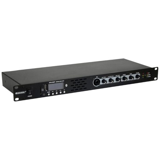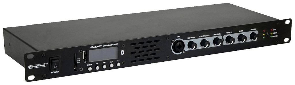 OMNITRONIC EPA-100BT 19" -os keverőerősítő audio lejátszóval KOMPAKT ÉS TISZTAAz EPA-100BT 1 U lapos sztereó keverőerősítő hatékony D osztályú technológiával különösen alkalmas éttermekben, fitneszstúdiókban és kiskereskedelmi üzletekben, ahol egyszerű zenevezérlésre van szükség.