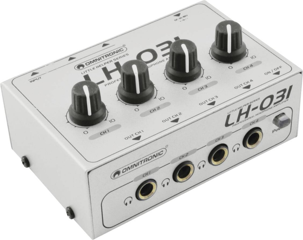 4 csatornás fejhallgató erősítő, RCA és 6,3 mm-es jack bemenettel. Elosztja a jelet 1 hangforrásról 4 fejhallgatóra. 1 sztereó bemenet (mono üzemmódra kapcsolható) RCA és jack csatlakozókon (3,5 mm és 6,3 mm). 4 külön állítható fejhallgató kimenet 6,3 mm-es jack aljzatokon keresztül. Olyan alkalmazásokhoz, mint: telepítés mobil használat mobil DJ-k / szóló előadók.