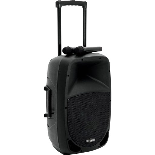 Technical specifications: Akku üzemidő (max.): 5 h · Csatlakozók: Mikrofon bemenet, kombi (XLR, 6,3 mm-es jack),6,3 mm-es jack kimenet,USB, A típus · Frekvenciatartomány: 62-18,000 Hz · Hangszóró méret (cm): 30.48 cm · Hangszóró méret (coll) (szatelita): 12 Zoll · Méret, hossz: 310 mm · Méret, magasság: 600 mm · Méret, szélesség: 360 mm · PA hangszóró jellemzők: Bluetooth,Beépített MP3 lejátszó,Gurítható · Súly: 11 kg · Teljesítmény (RMS): 45 W · Teljesítmény (max.): 90 W · Tápellátás: Akkuról üzemeltetett,Hálózatról üzemeltetett