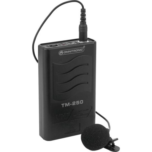 Jellemzők: Kiváló minőségű VHF zseb-adókészlet · A készlet tartalmaz bodypack adó-vevőt és Lavalier mikrofont · Alkalmas a VHF-250 vevőhöz, azonos vivőfrekvenciával · Működés 179 000 MHz rögzített VHF frekvenciával · Be / Ki / Némítás mód választó kapcsoló · LED kijelző az akkumulátor kapacitásához · Adóteljesítmény: 8,5 mW · 3,5 mm-es jack csavarkötés a fejpánthoz vagy a Lavalier mikrofonhoz · Tápegység 9 V blokkon keresztül (tartozék) · Regisztráció és díj szükséges.