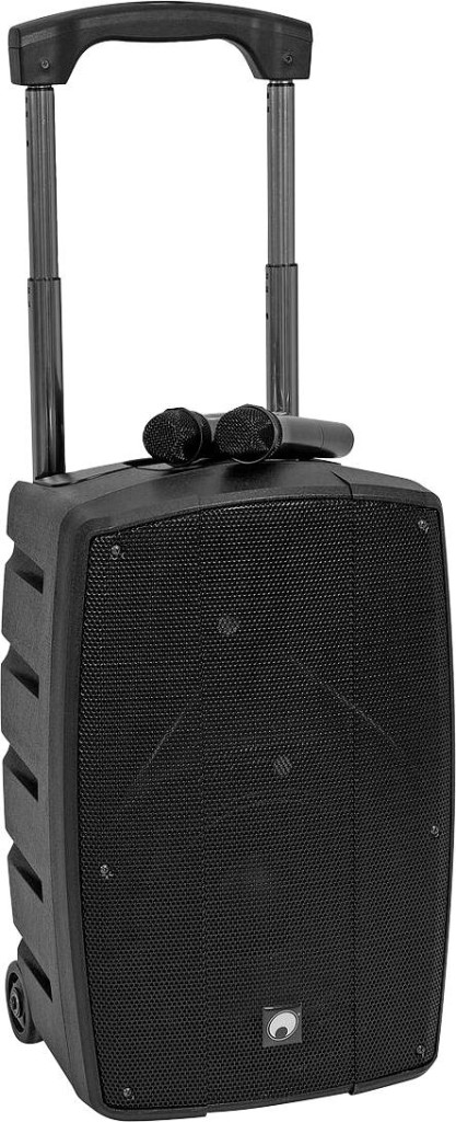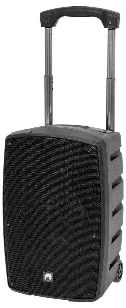 Mobil 12" -os PA rendszer elemes működéssel, audiolejátszóval, Bluetooth-szal és 2 vezeték nélküli mikrofonnal. Hordozható, többfunkciós erősítőrendszer 80 watt teljesítménnyel. 3 csatornás keverőerősítő. Rendkívül hatékony és akkumulátorkímélő bi-amp erősítő DSP vezérléssel. Sztereó Bluetooth kapcsolat vezeték nélküli sztereó működéshez 2 összekapcsolt rendszerrel. 2 mono bemeneti csatorna: Mic/Line és Hi-Z instrument (CH2) visszhanghatással és gerjedésgátlóval. 1 sztereó bemeneti csatorna belső audiolejátszóhoz vagy külső vonalszintű jelforrásokhoz talkover kapcsolóval. UHF rádióvevő 2 hozzá illő kézi mikrofonnal. Egy további akkumulátorral akár 8 órás üzemidő is beszerelhető. Jellimiter és -szűrő, DSP-vezérelt. Megosztott 2 sávos EQ a mély és magas hangokhoz. Vezeték nélküli, rugalmasan és sokoldalúan használható Működési idő akár 4 óra is lehet, a használt programtól függően. Fekete fémháló. Tartozéktartó rekesszel. Olyan alkalmazásokhoz, mint: színház mobil használat esküvők/gálák/rendezvények termékbemutatók és előadások. Hanglejátszó. Bluetooth-on keresztül vezérelhető IR távirányítóval. Bluetooth: Akár 20 méteres hatótávolság. 2,4 GHz világszerte, regisztráció és díjmentes. Mikrofon Iránykarakterisztika: vese. Hatótáv max. 30m UHF 863 - 865 MHz Regisztráció és díjmentes Európában.