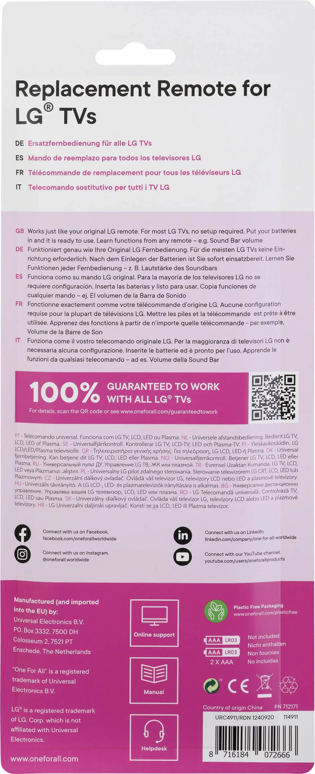 Műszaki adatok: Alkalmas: LG · Gyártói szín: Fekete · Szabályozható készülékek: 1 · Átviteli mód: Infra