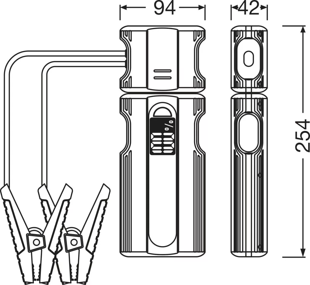 Az OSRAM BATTERYjumpstart 1500 legfeljebb 6 liter benzines vagy 3 liter dízelmotoros járműveket képes elindítani. 1500A indítóárammal a legtöbb 12V-os személygépkocsihoz, kisteherautóhoz, SUV-hoz és haszonjárműhöz alkalmas. A boost funkció lehetővé teszi a teljesen lemerült akkumulátorok elindítását. Az egyedülálló ergonomikus intelligens bilincs hosszabb kábelekkel rendelkezik a nehezen elérhető helyekhez való jobb hozzáférés érdekében. A biztonsági funkciók közé tartozik a fordított polaritás elleni védelem, a túlfeszültség elleni védelem és a rövidzárlat elleni védelem, amelyet hang- és LED-jelzők egészítenek ki. Beépített zseblámpa világítja meg a munkaterületet, a LED-jelzők pedig az akkumulátor aktuális töltöttségi szintjét mutatják. A készülék PD60W gyorstöltési technológiával rendelkezik az ultragyors töltéshez és a mobileszközök erőteljes töltéséhez az USB-C és USB-A portokon keresztül.