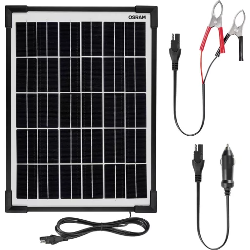 A modern járművek alacsony, de állandó akkumulátor-fogyasztásúak. Sok elektromos rendszer folyamatosan aktív, még akkor is, ha a gyújtás ki van kapcsolva. A riasztórendszerek, az indításgátlók és a zárfigyelő olyan rendszerek, amelyek a háttérben működnek, és akkor is lemeríthetik az akkumulátort, amikor a jármű nincs használatban. Ez egy alacsony szén-dioxid-kibocsátású és környezetbarátabb módszer a jármű akkumulátorának karbantartására, amikor nem használja. Ideális szezonális járművekhez, például lakókocsikhoz, klasszikus autókhoz és motorkerékpárokhoz Egyenáramú csatlakozóval és akkumulátorbilincsekkel szállítva, még borús körülmények között is működik, és IP 65-ös vízálló. A fordított polaritás elleni védelem megakadályozza a károsodást, ha a kivezetéseket nem megfelelő akkumulátorkapcsokhoz csatlakoztatják.
