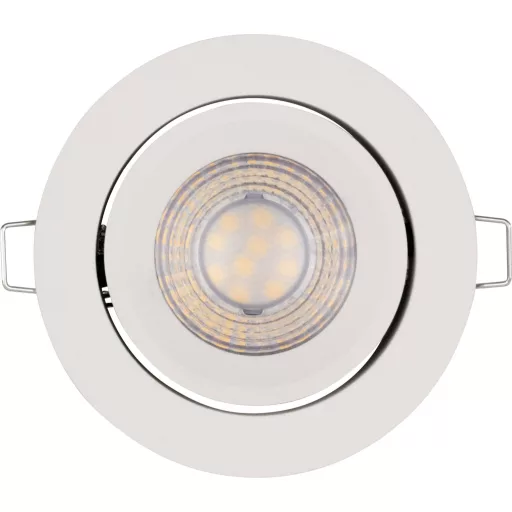 Süllyesztett spotlámpa fokozatmentes fényerő-szabályozással fali kapcsolóval. Termékjellemzők: Beépített LED modullal és meghajtóval. Alacsony beépítési mélység. 3 darabos lámpa szett. Állítható fej. Ház anyaga: alumínium. Termékelőnyök: WAGO gyorscsatlakozó sorkapocs az egyszerű és biztonságos telepítéshez. Időtálló dizájn Egyszerű szerelés. Akár 10 lámpa láncba kötése. Alkalmazási területek: beltéri alkalmazások. Folyosók, bejáratok, lépcsőházak, nappalik, pincék. Függesztett mennyezetek. Műszaki felszerelés: A teljes szerelési és csatlakoztatási tartozékok mellékelve. Biztonsági utasítások: Minden elektromos csatlakoztatást csak szakképzett személyzet végezhet. Vigyázat, áramütés veszélye. A lámpatesteket nem szabad hőszigetelő anyaggal bevonni.