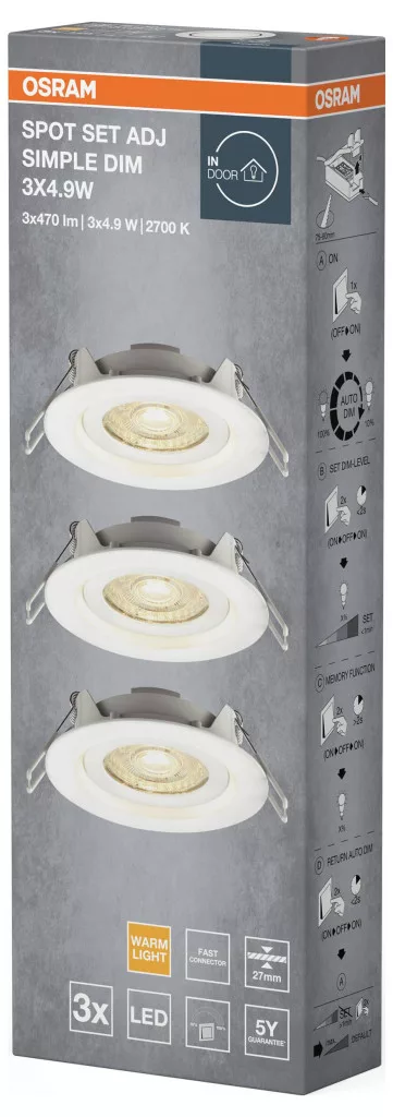OSRAM süllyesztett spotlámpa szett folyamatosan szabályozható fehér fényerővel