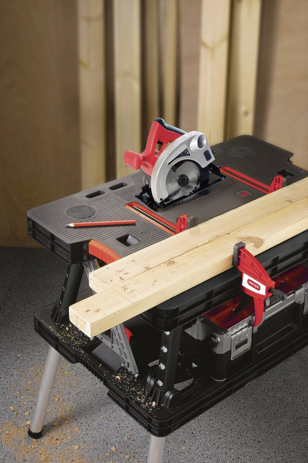Műszaki adatok: Szín: Szürke,Piros · Termék típus: Összecsukható munkapad