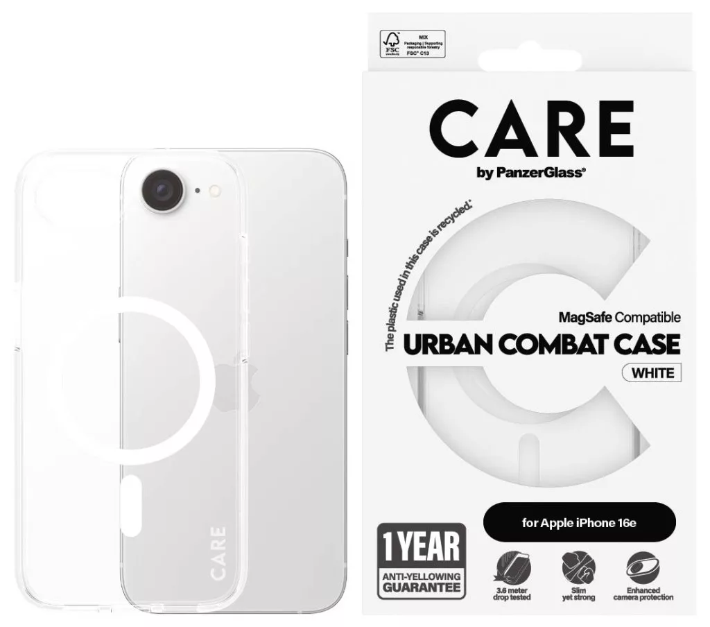 CARE Flagship Urban Combat MagSafe tok, átlátszó iPhone 16e-hez