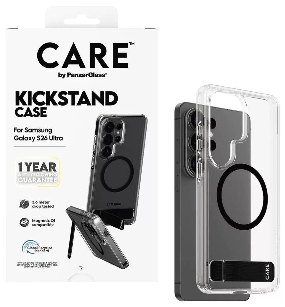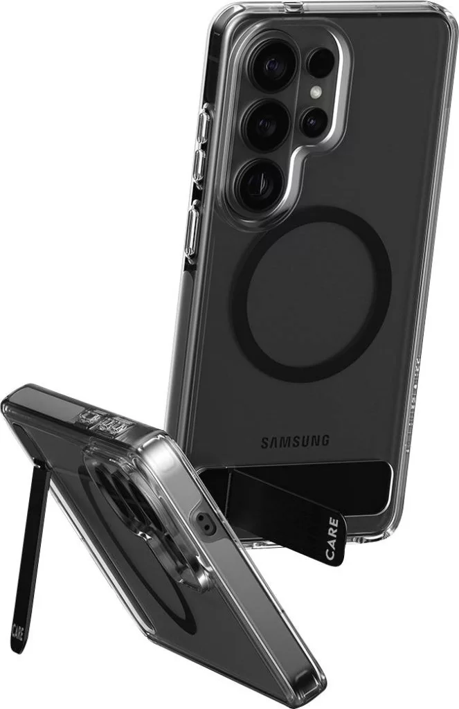 CARE by PanzerGlass Urban Explorer tok, átlátszó, kihajtható állvánnyal/Qi-val, Galaxy S26 Ultra készülékhez