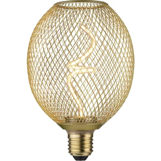 A 180 lm-es Metallic Glow LED lámpa a finom, arany fényt dekoratív, sárgaréz színű fémkosárral kombinálja. Az egyetlen izzószál, amelyet egy csavart üvegcső tart formában, és a finom rácsszerkezet kombinációja tökéletessé teszi a lámpákat E27-es foglalatú függő-, fali- vagy asztali lámpákhoz. Az időtlen dizájn a hatékony LED-technológiával találkozik, és hangulatos, aranyszínű kiemelő világítást biztosít. A fényforrás 3 fokozatban szabályozható a fali kapcsolóval, így sokféle világítási kialakítást tesz lehetővé.