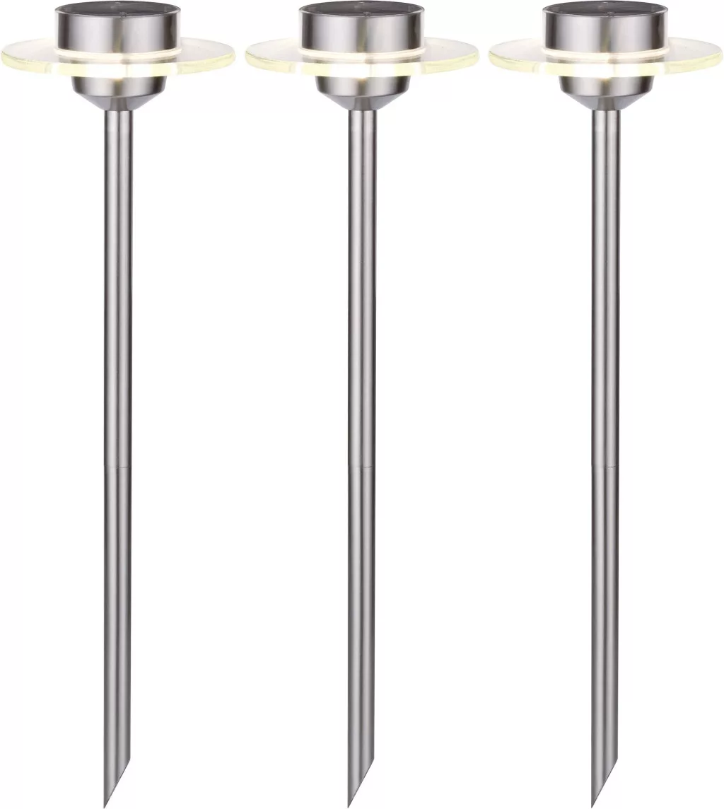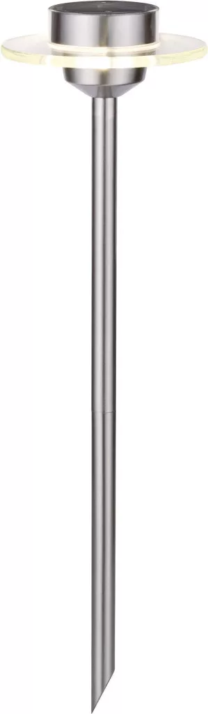 Műszaki adatok: Anyag: Nemesacél · Foglalat: Fixen beépített LED-es · Fényforrás típus: LED · Fényforrással: Igen · Fényszín: 3000 K · Fényszín (fényforrás): Melegfehér · Gyártói szín: Nemesacél, Átlátszó · Helyiség: Terasz/ülősarok, Ház/garázs, Járda megvilágítás, Hangulatos kertvilágítás · Lámpa jellemzők: Leszúró cövekkel · Méret, magasság: 55 cm · Súly: 1.16 kg · Teljesítmény: 0.2 W · Teljesítmény fényforrásonként: 0.2 W · Védelmi osztály: III · Védelmi típus: IP44 · Átmérő: 15 cm
