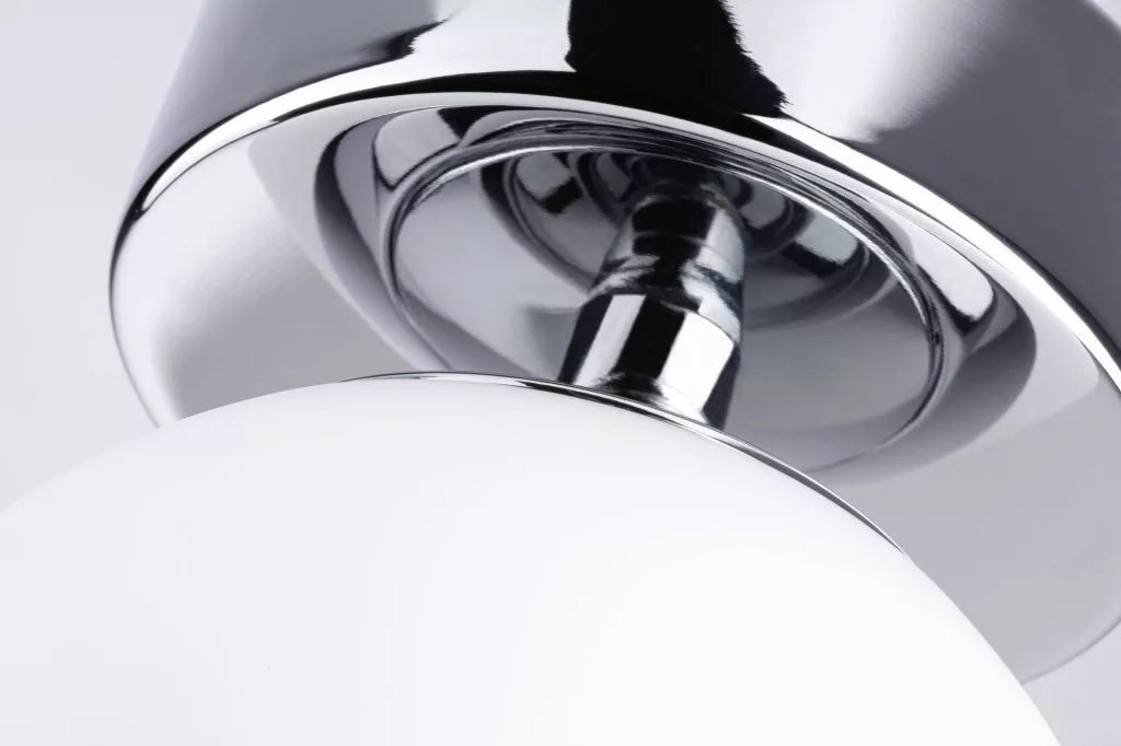Műszaki adatok: 2021-es energiahatékonysági osztályok: n.rel. · Fényforrások száma: 1 · Fényforrással: Igen · Fényszín: 3000 K · Fényszín (fényforrás): Melegfehér · Fényáram összesen: 900 lm · Fényáram/fényforrás (lumen): 900 lm · Gyártói szín: Króm, Selyem · Helyiség: Dolgozószoba, Fürdőszoba, Nedves helyiség, Járda megvilágítás, Ház/garázs, Gyerekszoba, Konyha, Hálószoba, Hangulatos kertvilágítás, Terasz/ülősarok, Nappali/étkező · Kivitel (lámpa): Gömb · Méret, magasság: 215 mm · Teljesítmény: 9 W · Teljesítmény fényforrásonként: 9 W · Védelmi osztály: II · Védelmi típus: IP44 · Átmérő: 170 mm · Üzemi feszültség: 230 V
